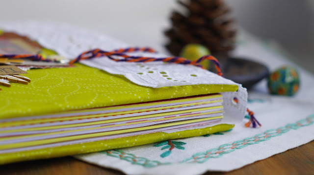Сегодня я к вам с самым, наверное, своим длинным долгостроем из всех долгостроев. Желтый осенний блокнот с вязаным элементом я решила сделать еще в прошлом году. Но что-то там сразу не заладилось, потом я даже связала салфеточку, потом отложила эту чумовую осеннюю тканюшку и даже нарезала желтые листочки. Но картинка не складывалась, ну никак. Вот не вижу готовый результат и все. Сначала меня это беспокоило, потому что ну не люблю я оставлять недоделки. Но потом поняла, что просто нужно время. Может, вас удивит такое отношение к такой в сущности прагматичной вещи, как блокнот, но для меня каждый блокнот - это своя идея, свой смысл, своя история, а не просто "еще один блокнот". Ну как страничка, холст...